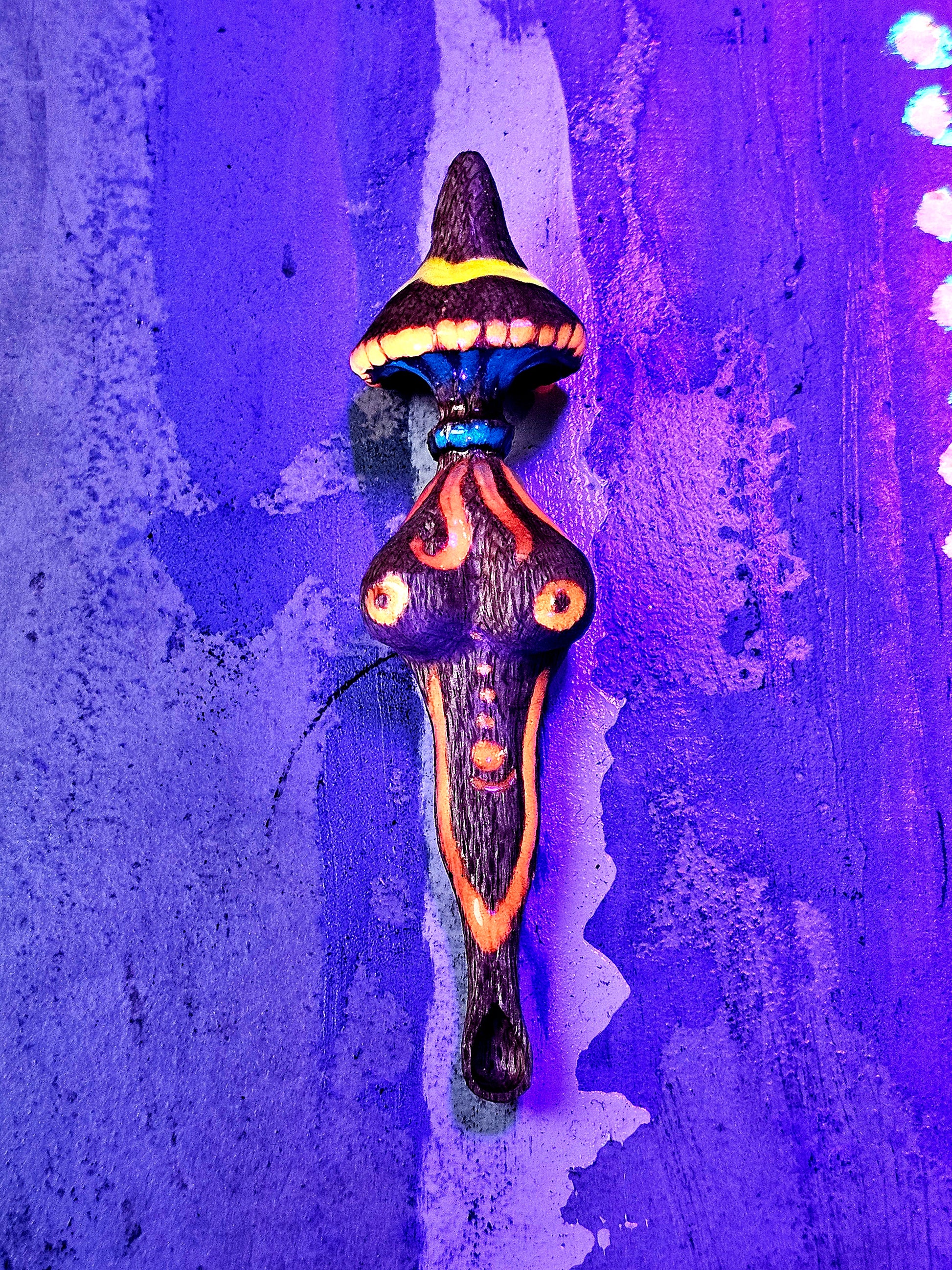 Crafted from silky oak and her elegance unmatched. The fun-gal hums with forgotten forest magic. Its gnarled tip sprouts a luminous, ever-blooming cap, pulsing gently with life. Wielders harness its power to commune with fungi, accelerate growth, and summon protective spore clouds from the earth’s depths.