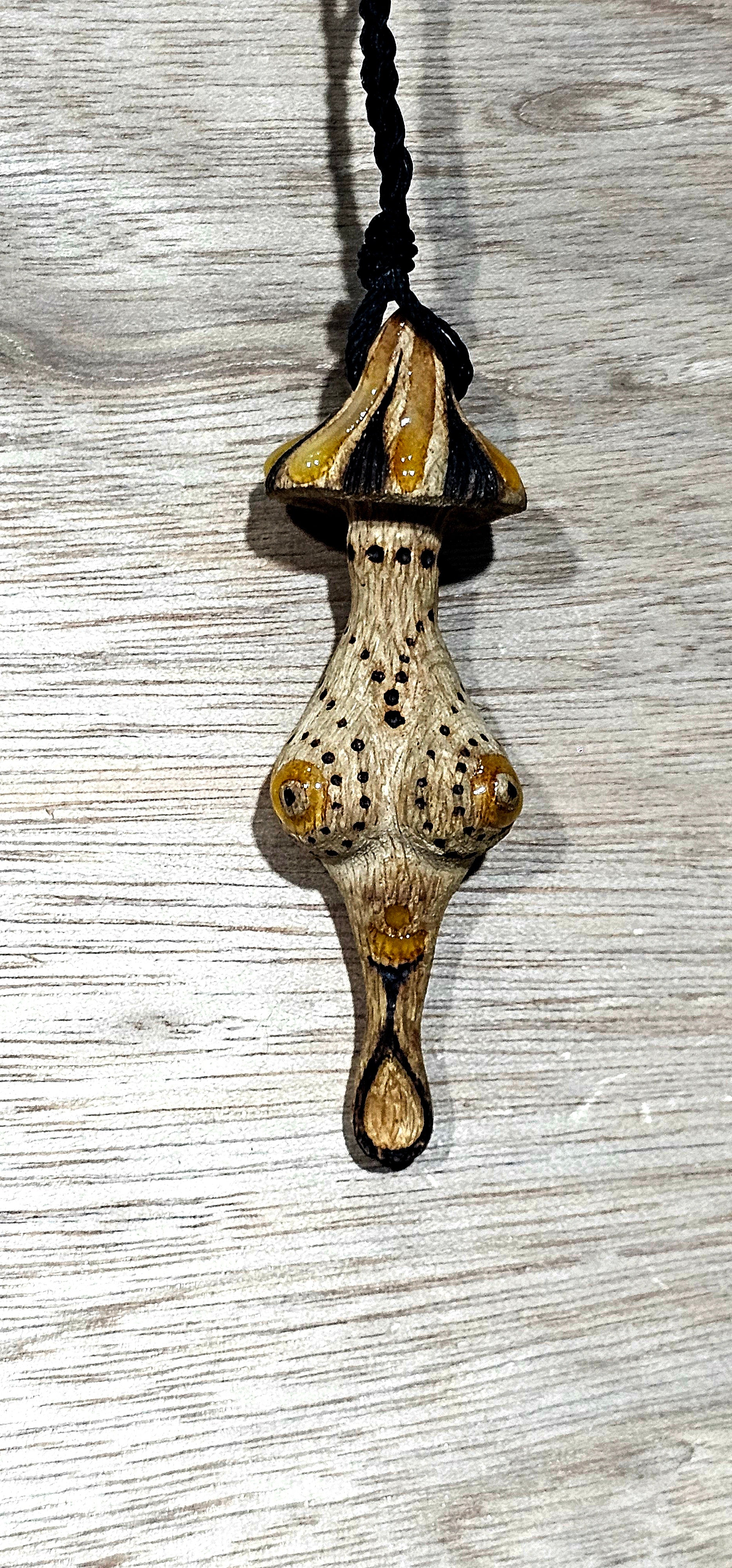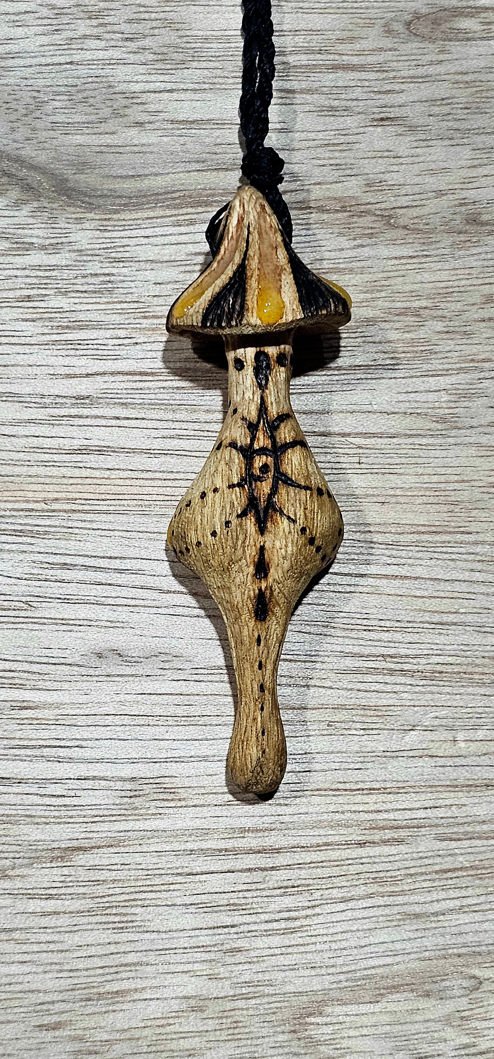 The mushroom cap symbolising the minds evolution and growth. While the curves of the handle mirror the angelic form of a woman, the giver of life and sanctuary of grace.